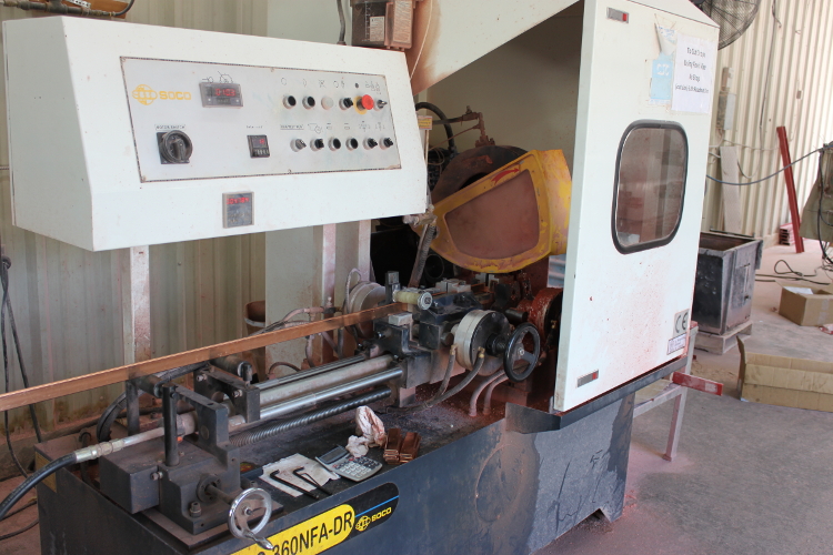 An automatic non-ferrous saw keeps the machine shop supplied with material while holding tolerances of +/-.005. Precision sawing is also available for your cut-to-length requirements.